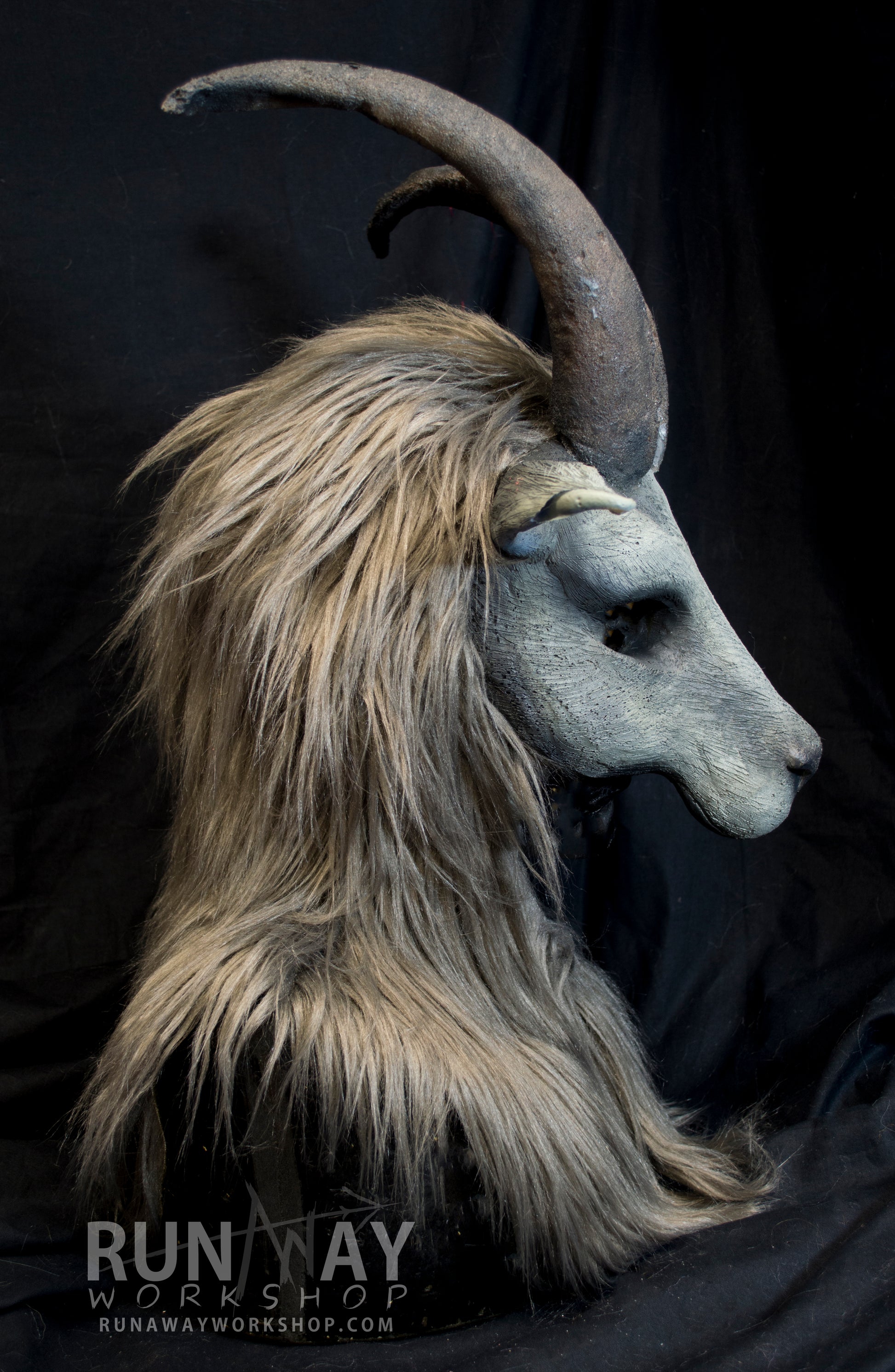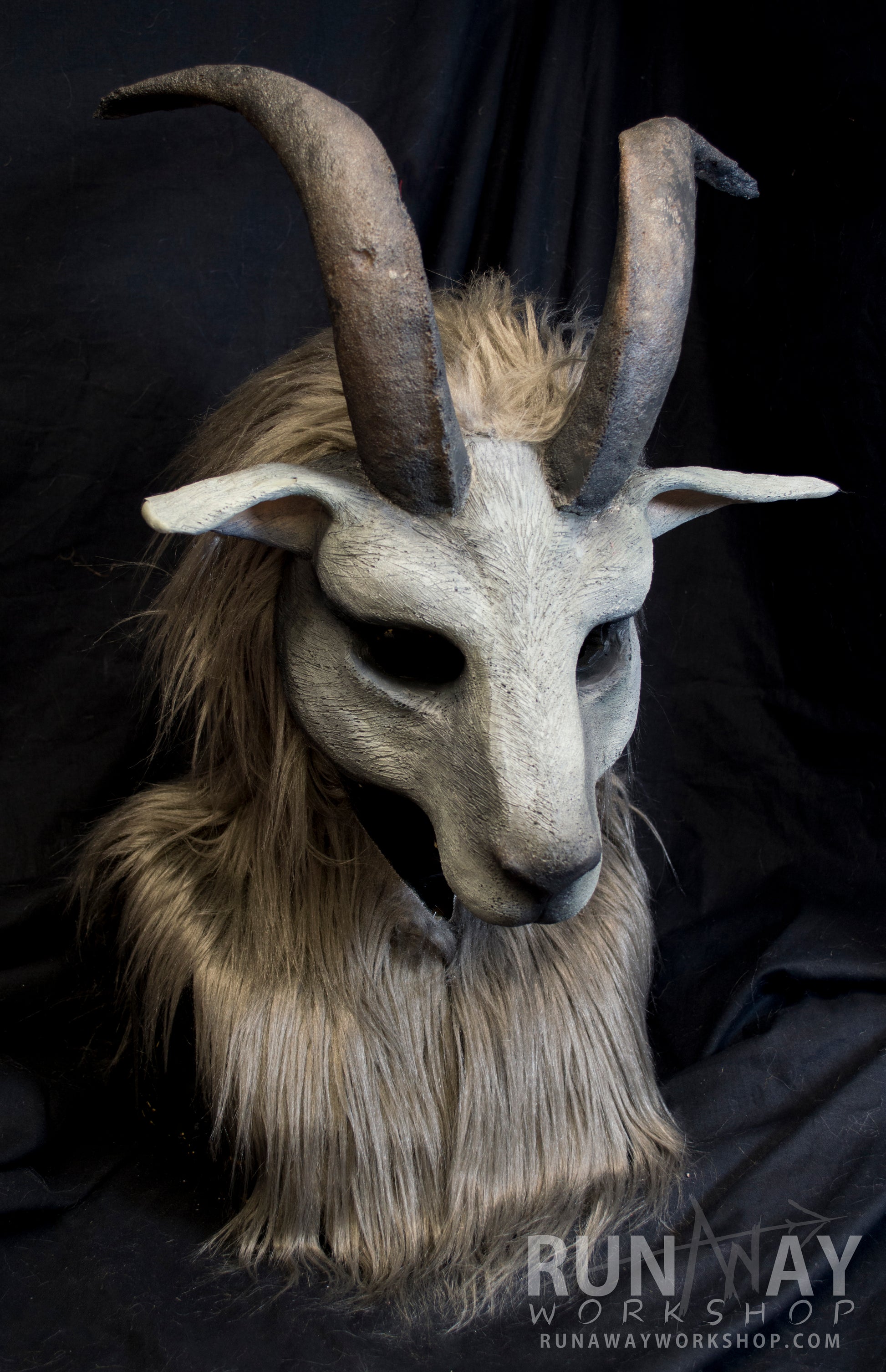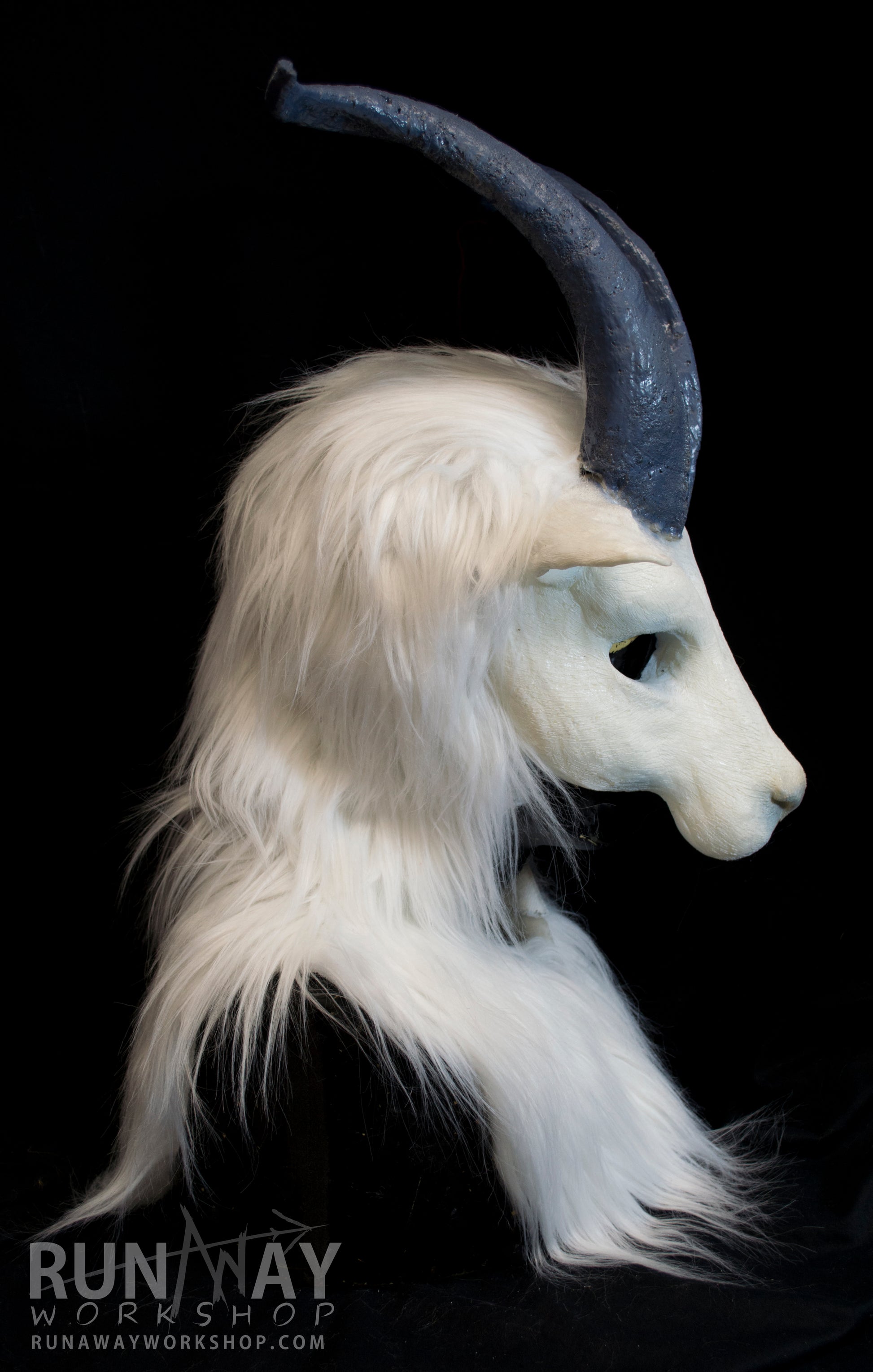 Each mask is finished with an easy-to-clean lining to protect the foam, an adjustable velcro strap, a hood made of high-quality faux fur, a wooden button fastening around the collar, and a Latex-free flexible, protective sealant.